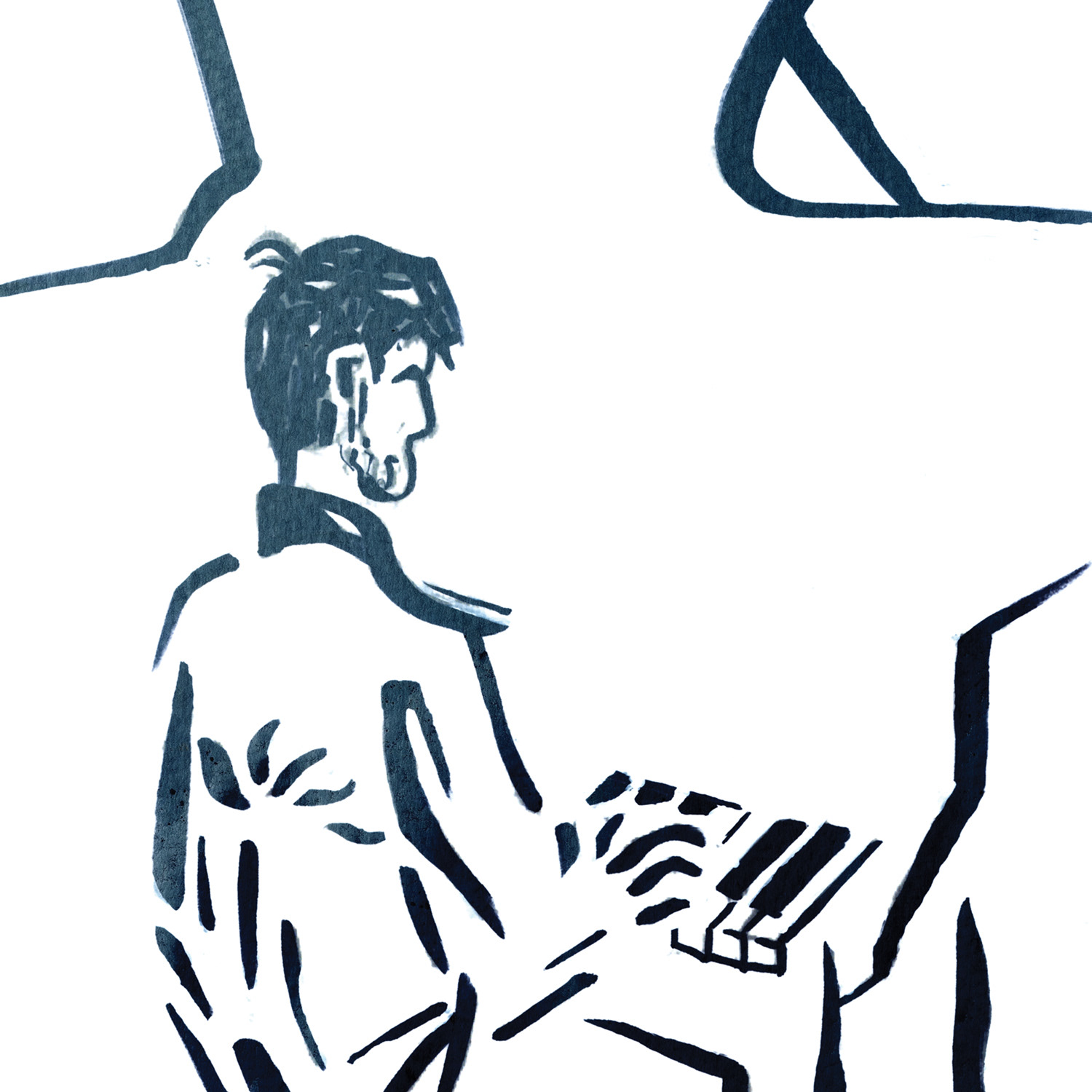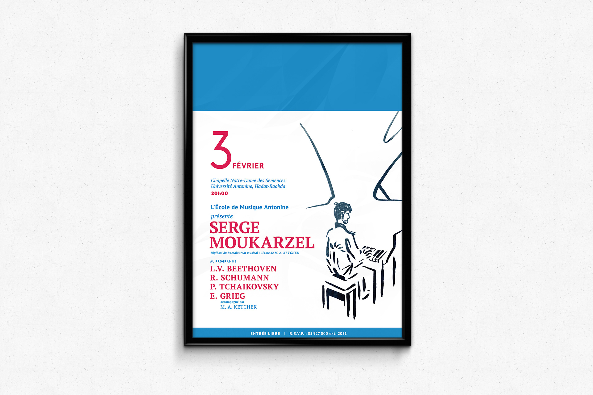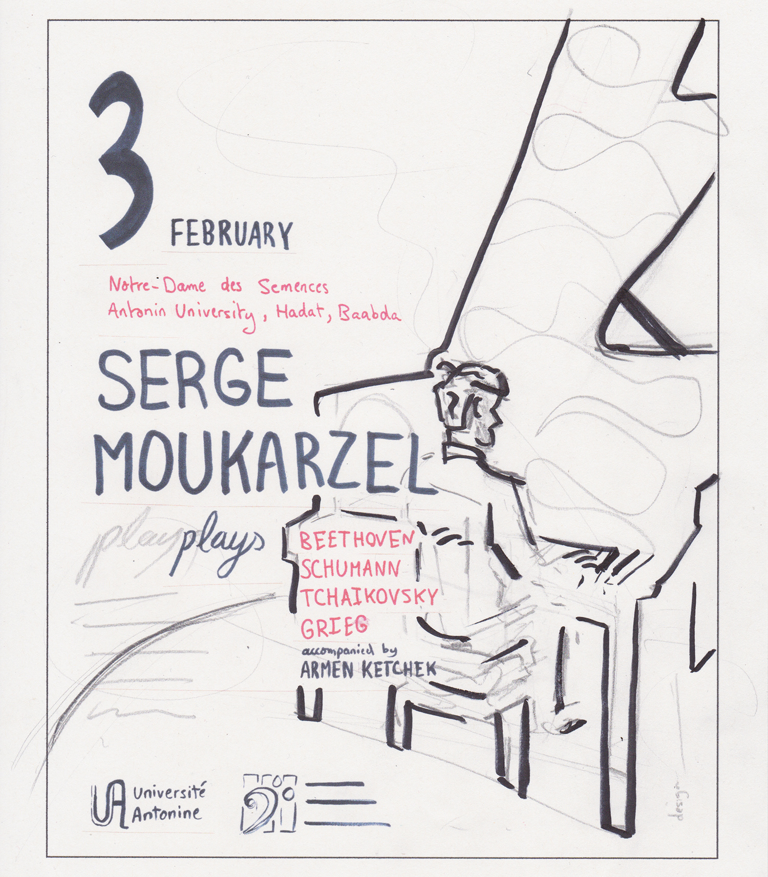 Design process: sketch, refined illustration, typography.