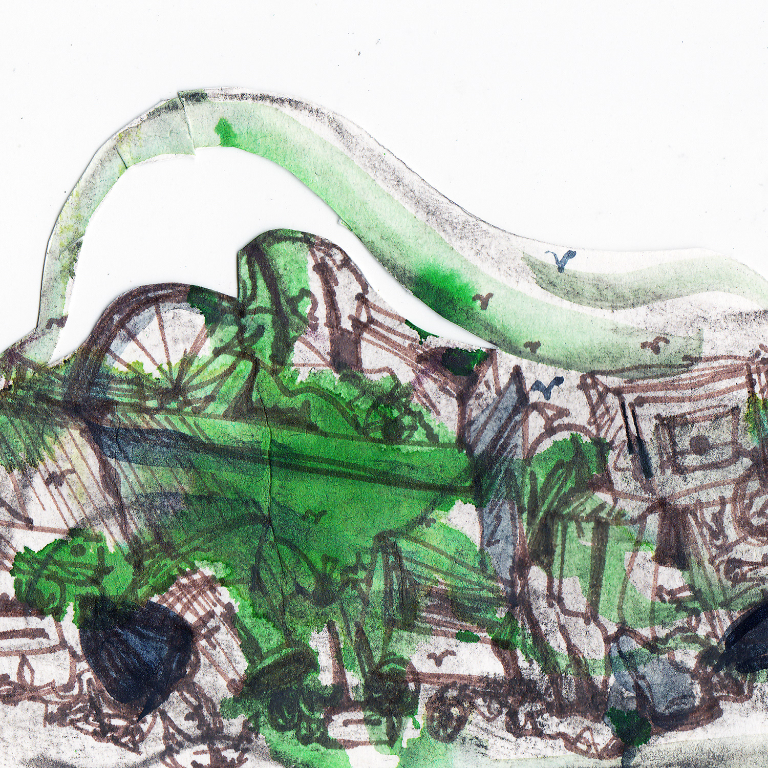 Commissioned by Recycle Beirut, this illustration depicts a sad reality. Families are hoping to escape the ecological disaster posed by the waste crisis in Lebanon.